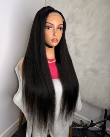 Kinky Straight Glueless Virgin Human Hair 30 Inches Wig
