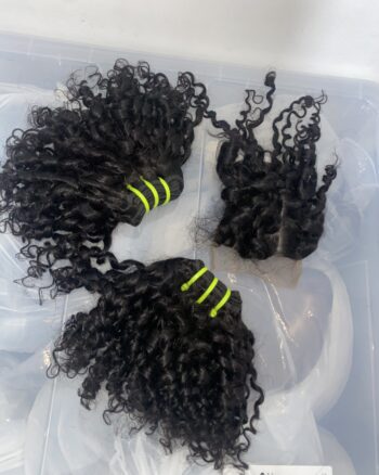 Virgin human hair Pixie Curls Bundles & 4×4 Lace Closure