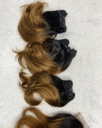 Virgin human hair Bouncy Ombre DD Bundles & 4×4 Lace Closure