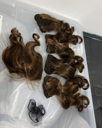 Virgin human hair 14inches Bouncy Highlights Bundles, & 4×4 Lace Closure