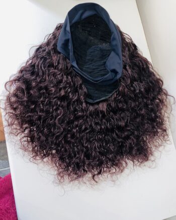 Virgin Human Hair Headband water curly dark-burgundy Wig