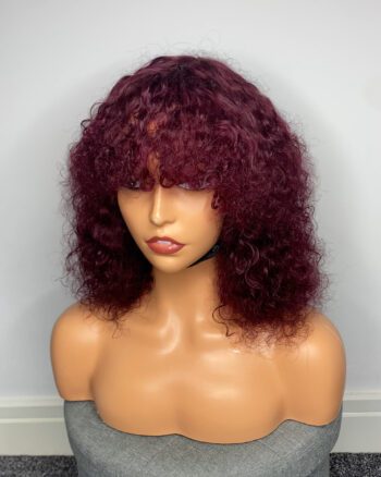 Virgin Human Hair Celebrity Fringe Jerry Curly Wig, Burgundy