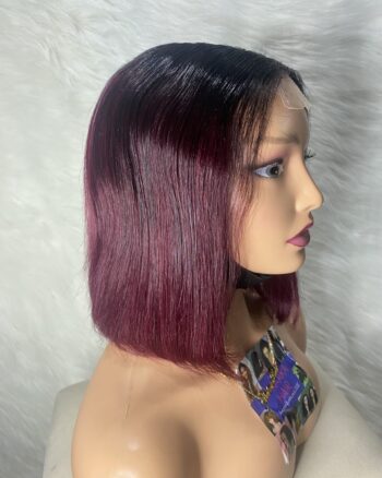 Burgundy Virgin Human Hair Straight Bob Double Drawn Wig